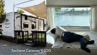 브이로그 옆집언니는 어디서 뭐해? (여행) 사천여행 1일차 비토섬 카라반 여행 vlog 얼마만에 비행기야 ✈️ 삼다도 전복물회 맛집 인정🦪 [ 비토섬신우리조트 글램핑N 카라반 ]옆집언니는 어디서 뭐해? (여행) 150,000